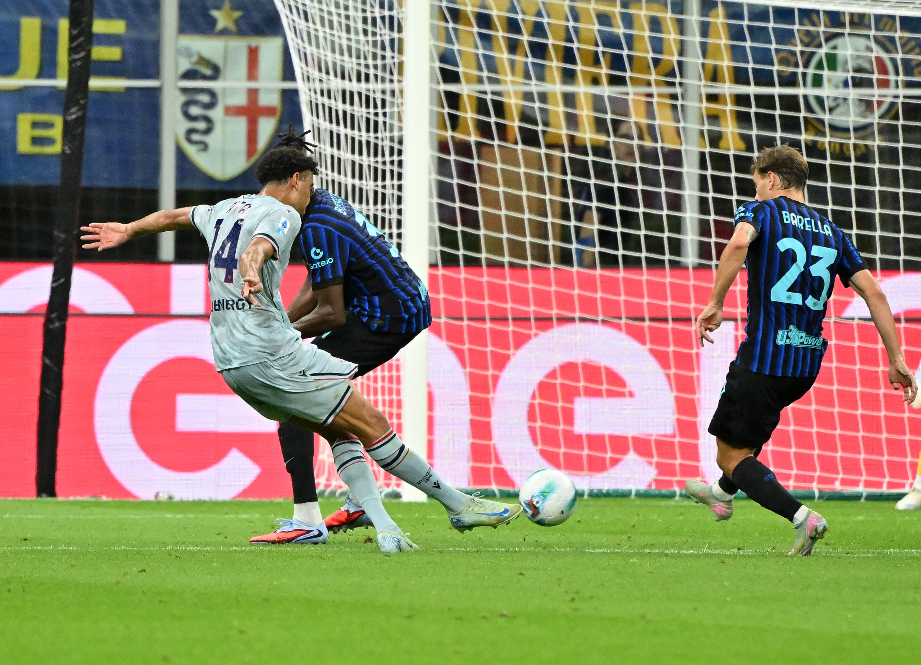 8月31日,国际米兰队球员邓弗里斯在比赛中射门得分。 新华社发(阿尔贝托·林格利亚摄)